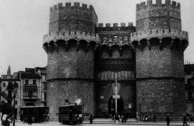Torres de Serranos en 1892: Tranvía a Tabernes Blanques